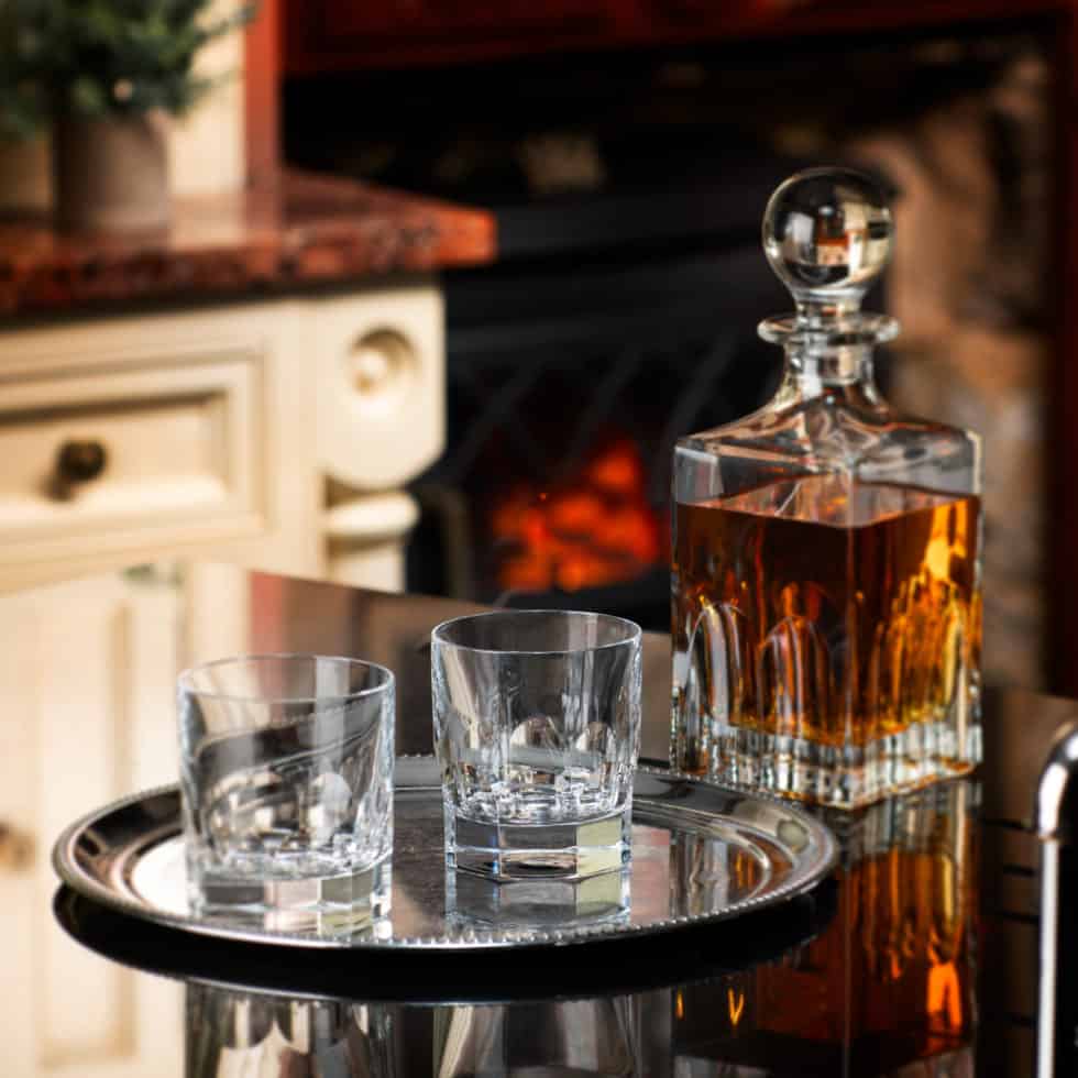 The Lewis collection is a weighted and resilient range that features a thumb cut pattern on the crystal, creating a sophisticated faceted effect. The lead free crystal whisky decanter displays your whisky beautifully and is supplied in a luxurious navy gift box lined with navy satin, perfect for gifting to a whisky drinker. If you're looking for an extra special gift, upgrade to a Lewis Decanter Gift Set Personalised crystal engraving available.