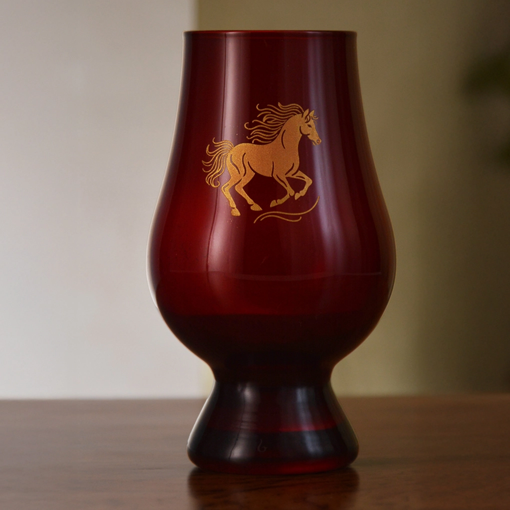 This limited edition set of two red Glencairn Glasses features a striking gold-filled horse motif, symbolising strength, success, and momentum for the year ahead. The deep red glass – traditionally associated with luck and prosperity – also serves a functional purpose, concealing the colour of the spirit for a heightened sensory tasting experience.