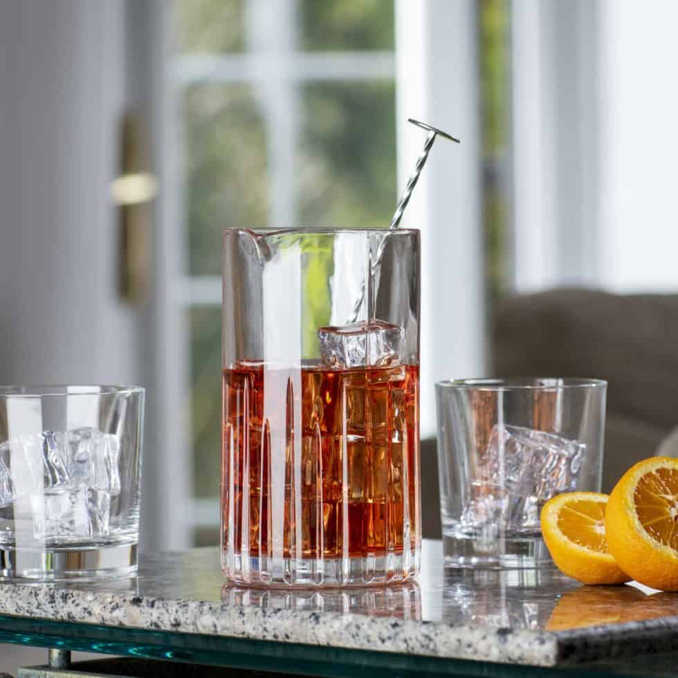 No home bar is complete without a cocktail mixer. Step up your cocktail game, use it together with a bar spoon and strainer which will chill the ingredients and allow for less dilution. Perfect for creating Manhattans or Dry Martinis for your next gathering. Made from premium lead-free crystal and supplied in a premium gift carton.